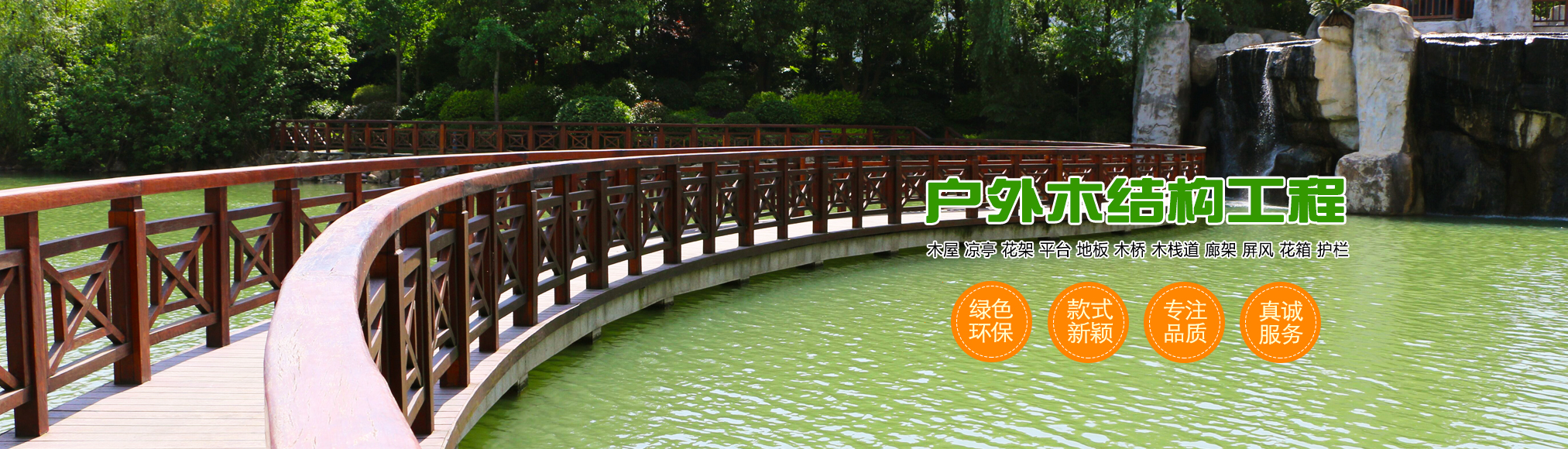 常德上川園林景觀工程有限公司是一家集庭院景觀設計及施工于一體的專業園林景觀公司。業務涵蓋各種防腐木(芬蘭木、俄羅斯樟子松、柳桉木、菠蘿格等)、碳化木。專業制作木屋、涼亭、廊架、地板、護欄及其它各種木結構制品,承接室內外假山、噴泉、水凈化、雕塑、 園林綠化及其它土木工程建筑施工等各項工程,可根據客戶要求進行規劃、設計、施工,為客戶定制觀賞性實用性俱佳的私家庭院。
